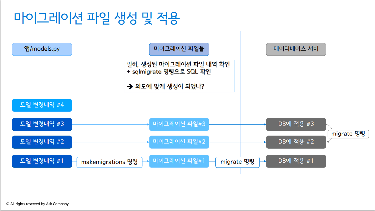 모델의 변경내역을 "데이터베이스 스키마"로 반영시키는 효율적인 방법을 제공하는 명령어