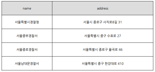 INSERT INTO police_station VALUES ('서울중부경찰서', '서울특별시 중구 수표로 27');