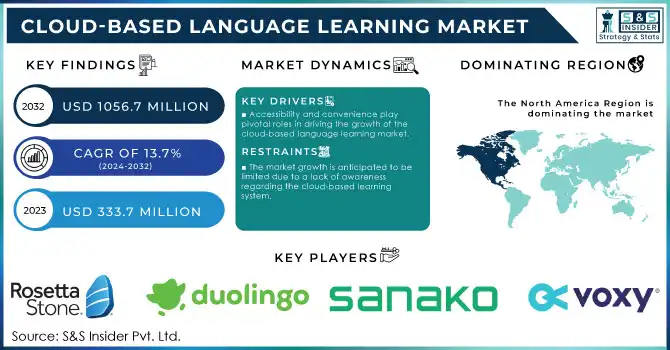 The Cloud-Based Language Learning Market Size was valued at USD 333.7 Million in 2023. It will reach to $1056.7 Mn by 2032 and grow at a CAGR of 13.7% over the forecast period of 2024-2032.