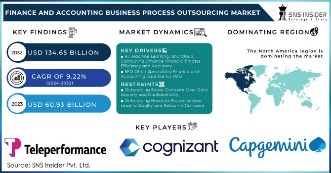 Finance and Accounting Business Process Outsourcing Market size was valued at USD 60.93 Billion in 2023. It is expected to Reach USD 134.65 Billion by 2032 and grow at a CAGR of 9.22% over the forecast period of 2024-2032.