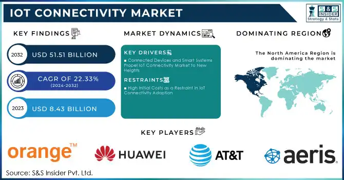 The IoT Connectivity Market Size was valued at USD 8.43 billion in 2023 and is expected to reach USD 51.51 billion by 2032, growing at a CAGR of 22.33% from 2024-2032.