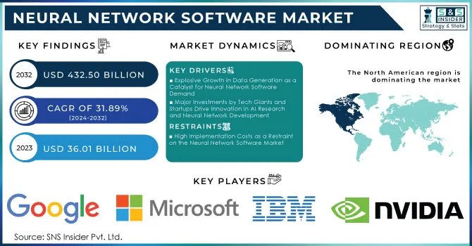 The Neural Network Software Market size was valued at USD 36.01 billion in 2023 and is expected to reach USD 432.50 billion by 2032, with a growing at CAGR of 31.89% over the forecast period of 2024-2032.