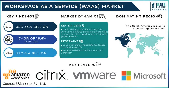 Workspace as a Service (WaaS) Market Size was valued at USD 8.4 Billion in 2023 and is expected to reach USD 33.4 Billion by 2032 and grow at a CAGR of 16.6% by 2024-2032
