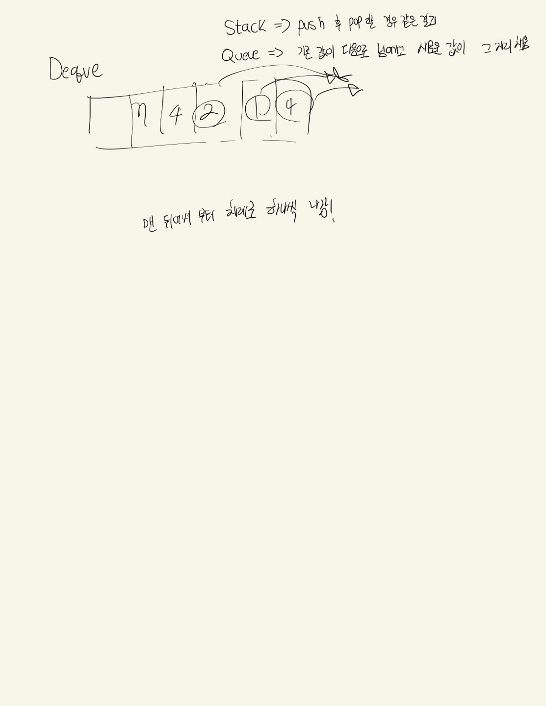 먼저 들어가는 요소는 addLast로 들어가서 deque의 앞쪽에 있게 한다.