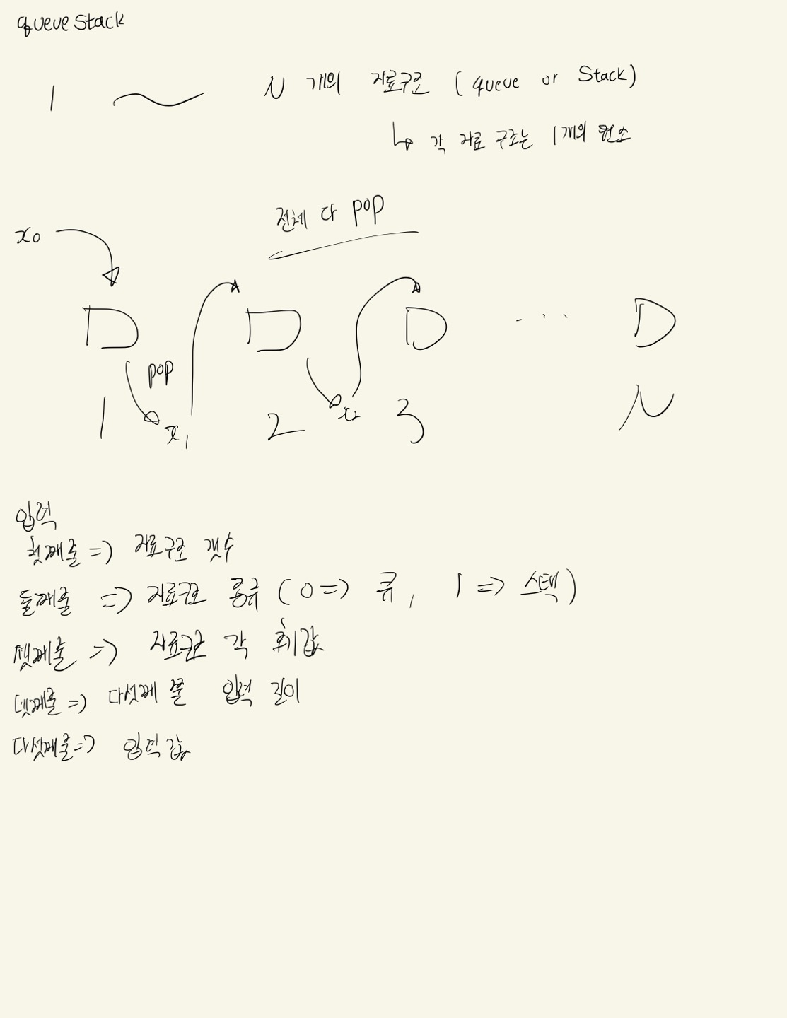 N개의 자료구조(1~N)로 구성 된 queuestack이 있을 때, 각각의 자료구조에는 한 개의 원소가 들어있다.