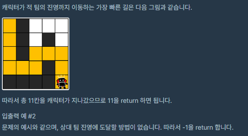 코딩테스트 연습 > 깊이/너비 우선 탐색(DFS/BFS) > 게임 맵 최단거리
