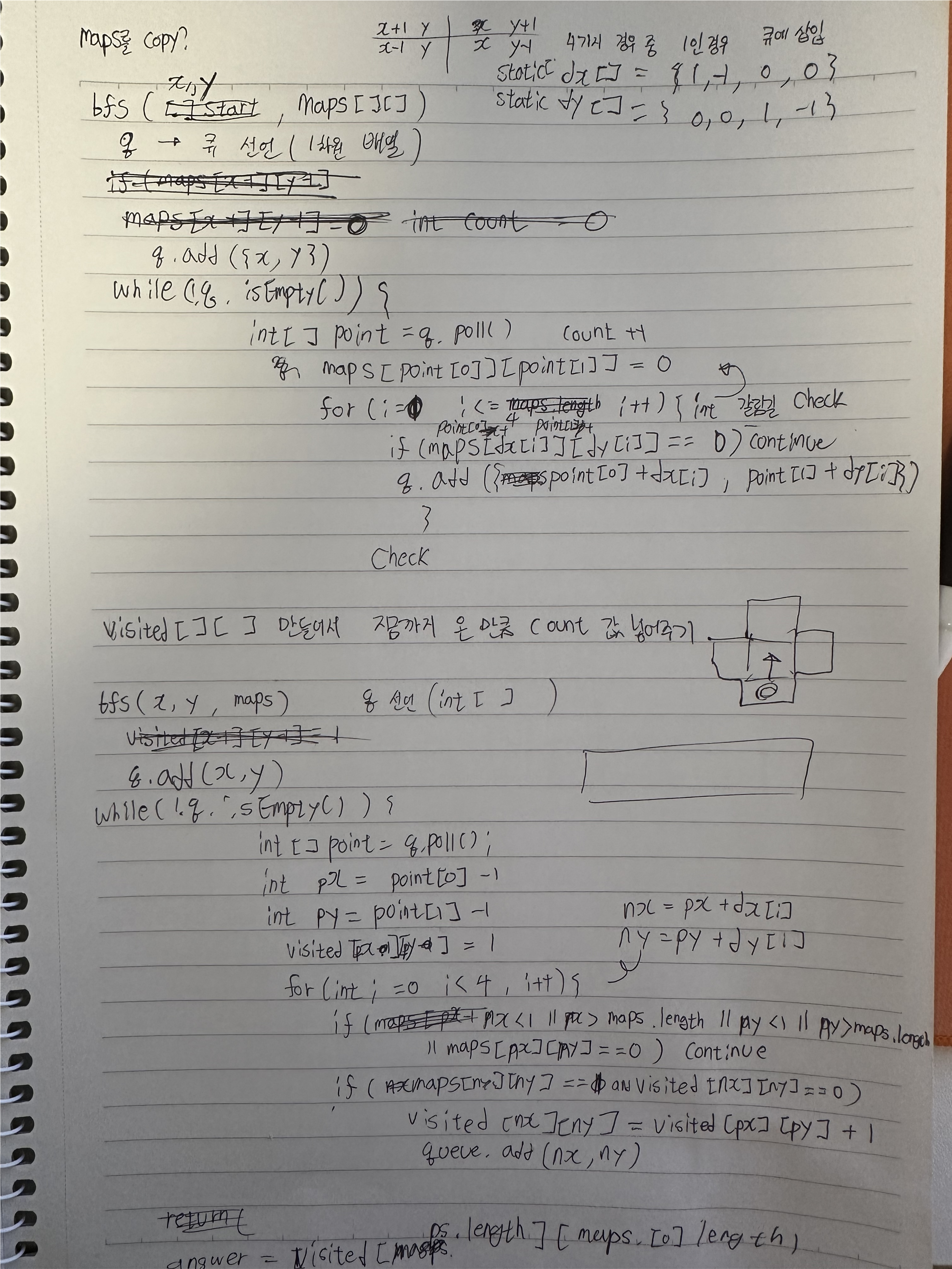 if(maps[nx-1][ny-1] == 1 && visited[nx][ny] == 0){