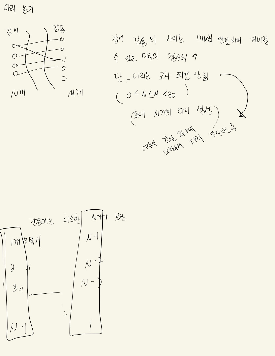 단계별로 풀어보기 > 조합론 > 다리 놓기