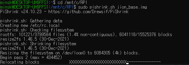 sudo pishrink.sh raspberrypi.img # 해당 명령어는 /mnt/c/RPI 파일에서 실행해야함.
