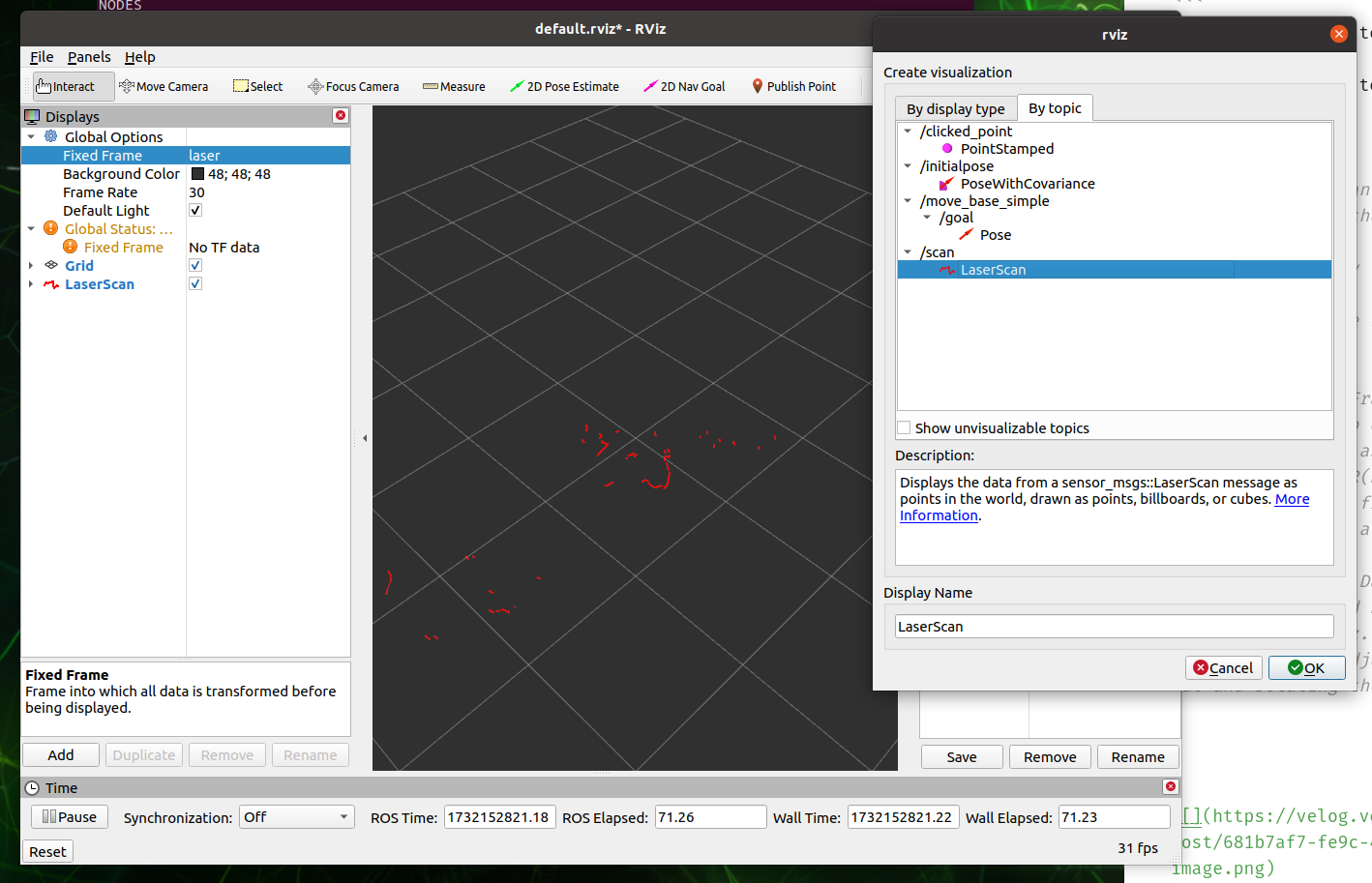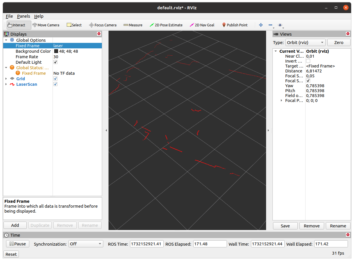At the top of the RViz window, set the "Fixed Frame" to laser, depending on the frame used by your LIDAR(But we are using Rplidar A1). You can check the frame by running rostopic echo /scan and looking at the header.