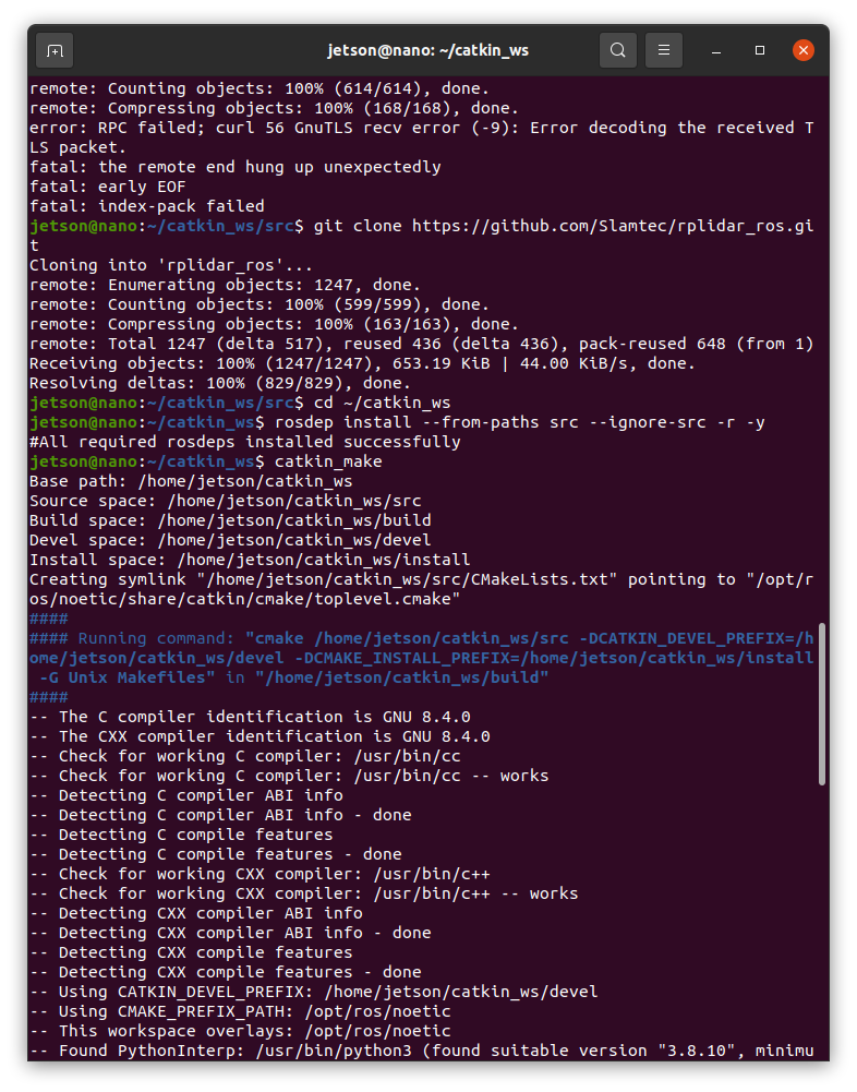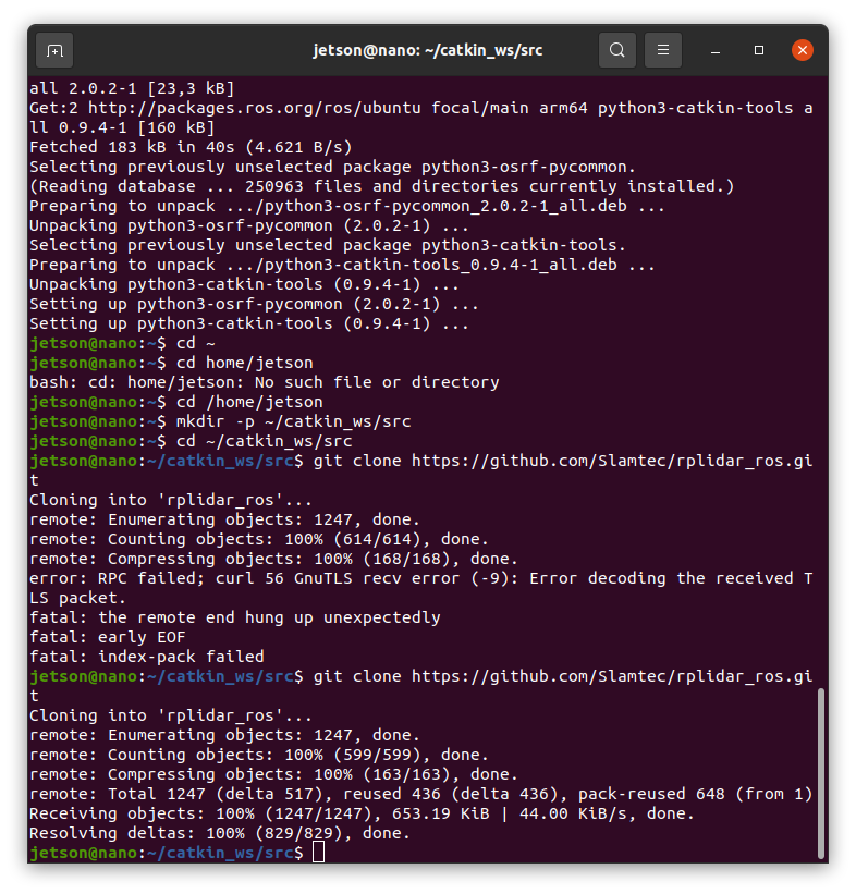 git clone https://github.com/Slamtec/rplidar_ros.git