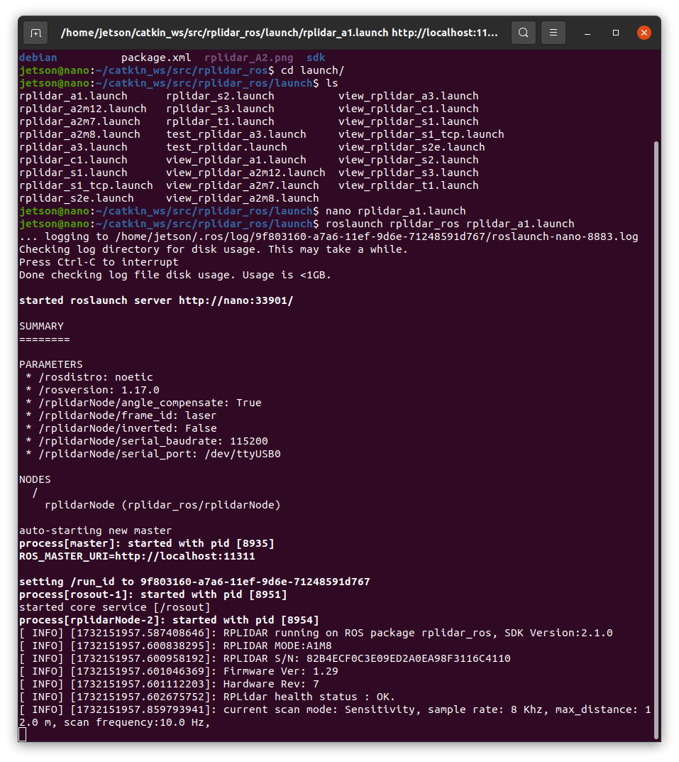 check "rplidar_a1.launch"in ~/catkin_ws/src/rplidar_ros/launch.