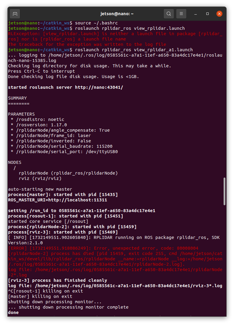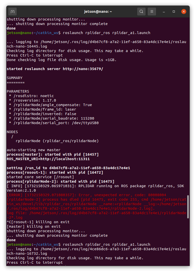 [ INFO][1732153206.098174614]: RPLIDAR running on ROS package rplidar_ros, SDK Version:2.1.0