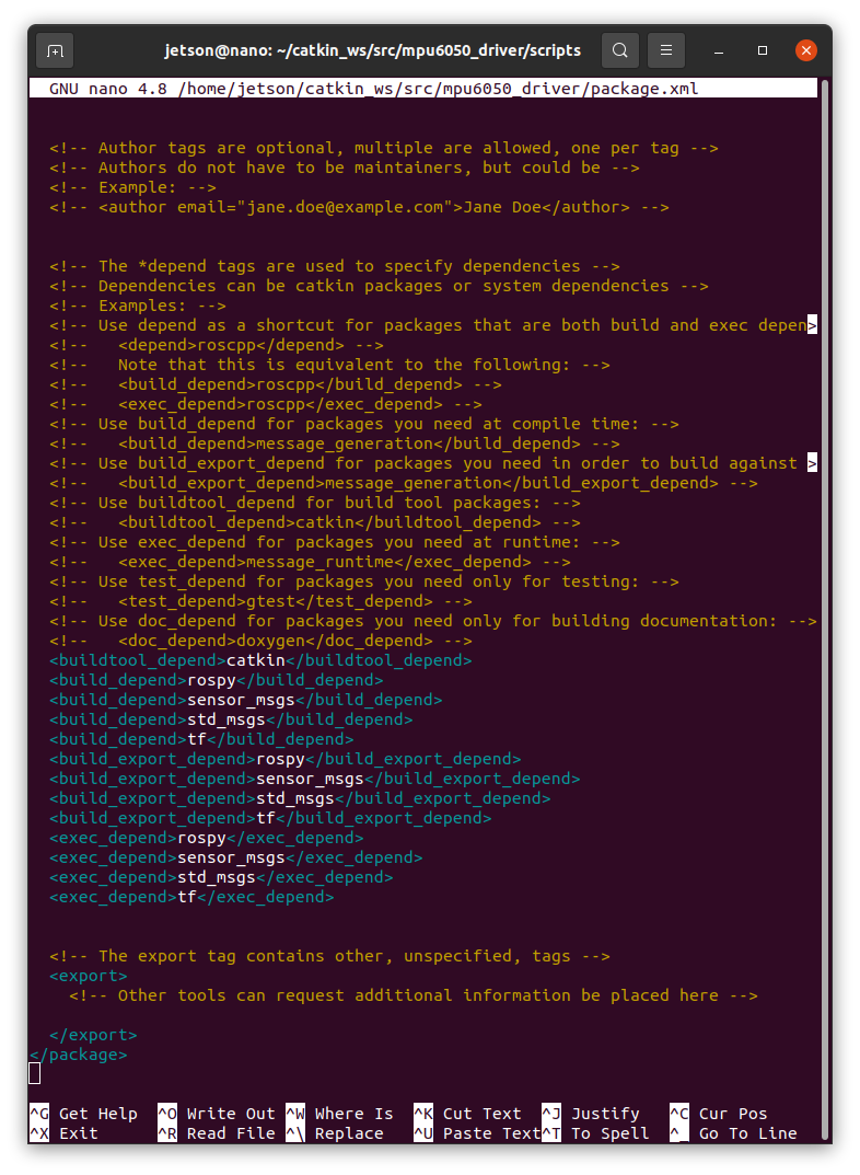 nano ~/catkin_ws/src/mpu6050_driver/package.xml