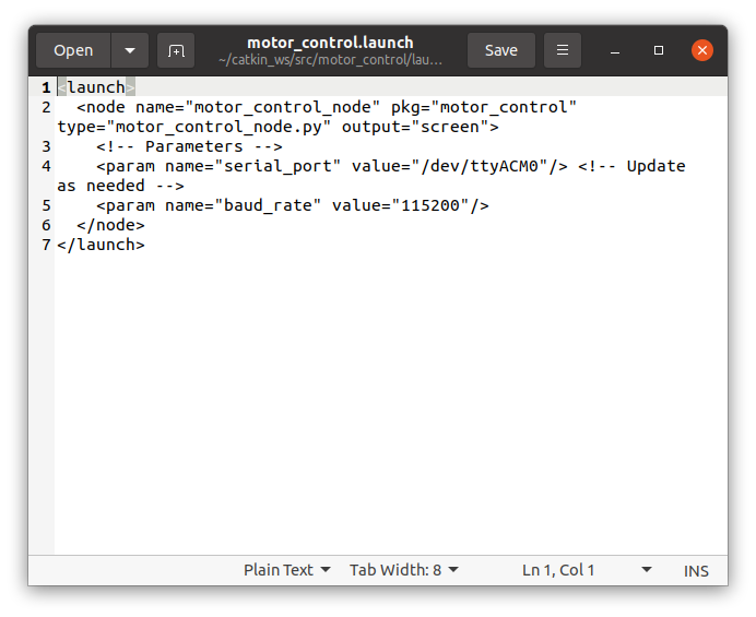 <param name="serial_port" value="/dev/ttyACM0"/> <!-- Update as needed -->