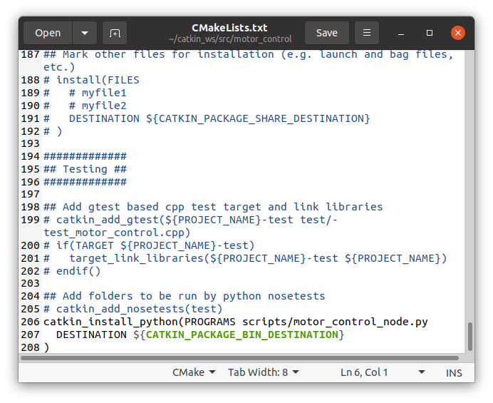 nano ~/catkin_ws/src/motor_control/CMakeLists.txt