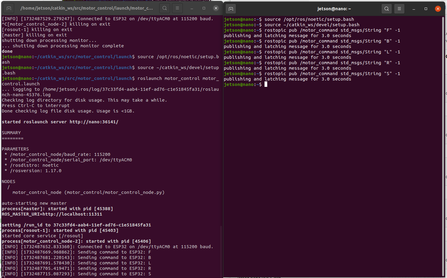 Program the ESP32 to listen for serial commands from the Jetson Nano and control the motors accordingly.