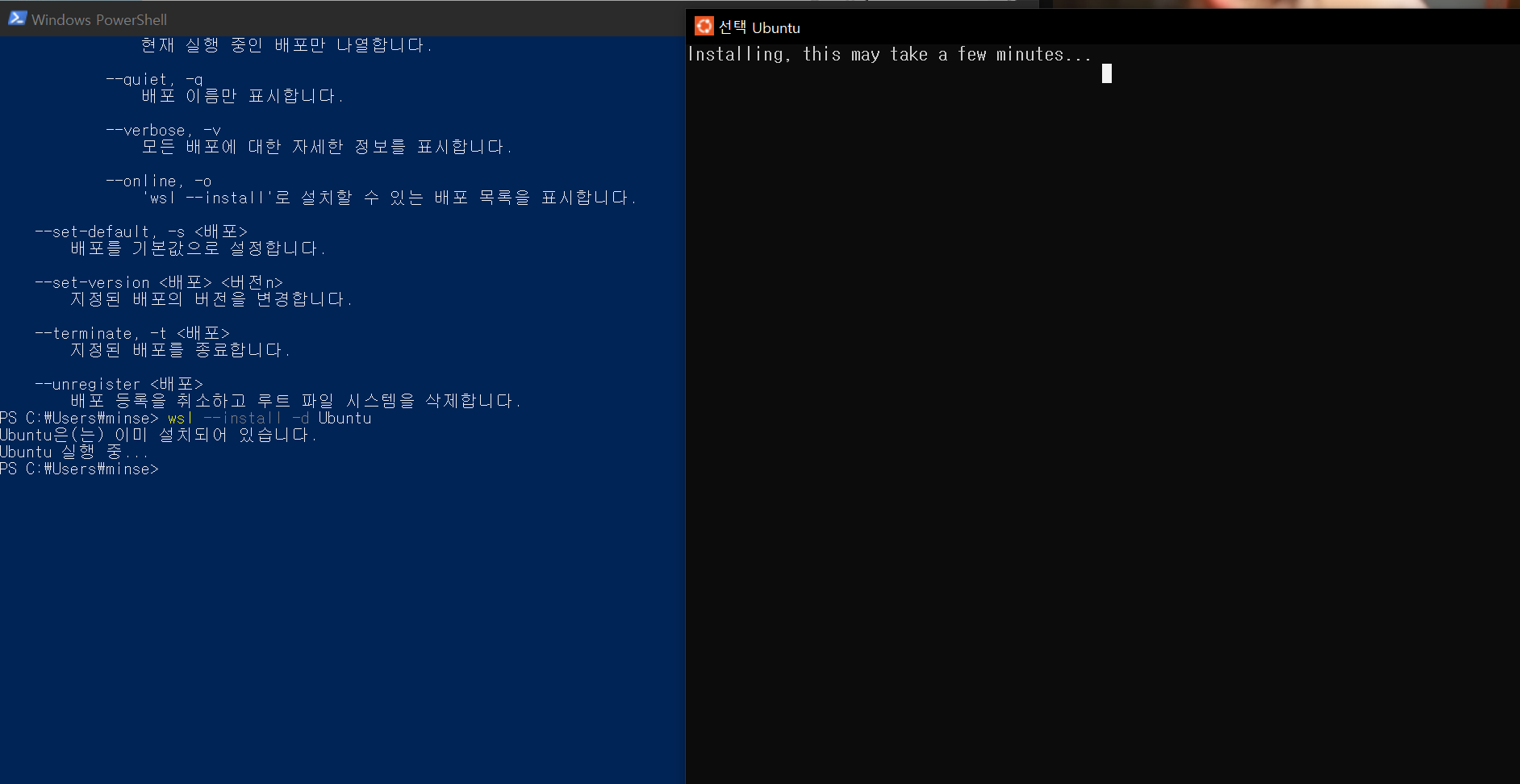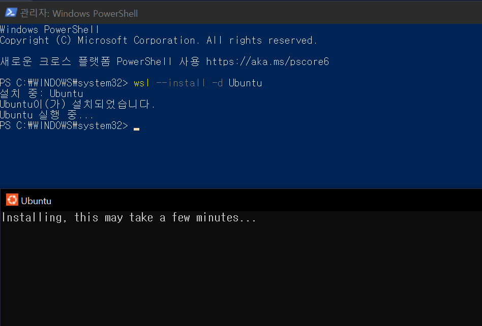 Windows 11에서는 아래 명령 한 번으로 WSL, 가상머신 플랫폼, 기본 우분투 설치까지 자동 진행