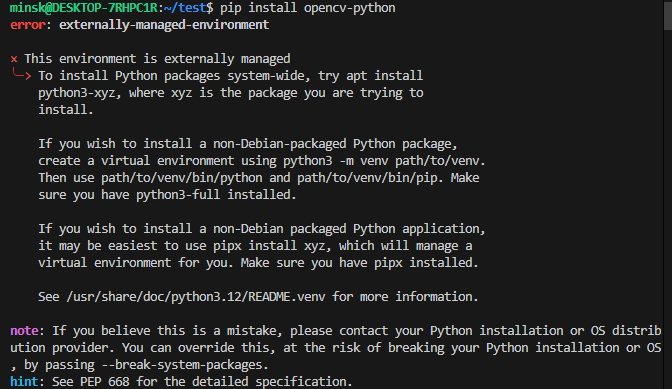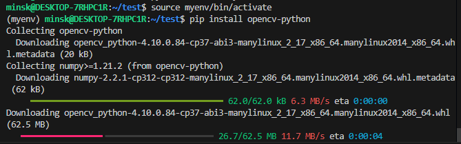 (apt 패키지 관리자(시스템 패키지)로 설치하는 방법)sudo apt update sudo apt install python3-opencv이걸 shell에 입력함 => Ubuntu 저장소에 바로 OpenCV 모듈이 설치될 것임.