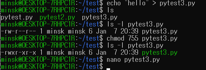 (1) 파일 생성 및 권한 변경(chmod)