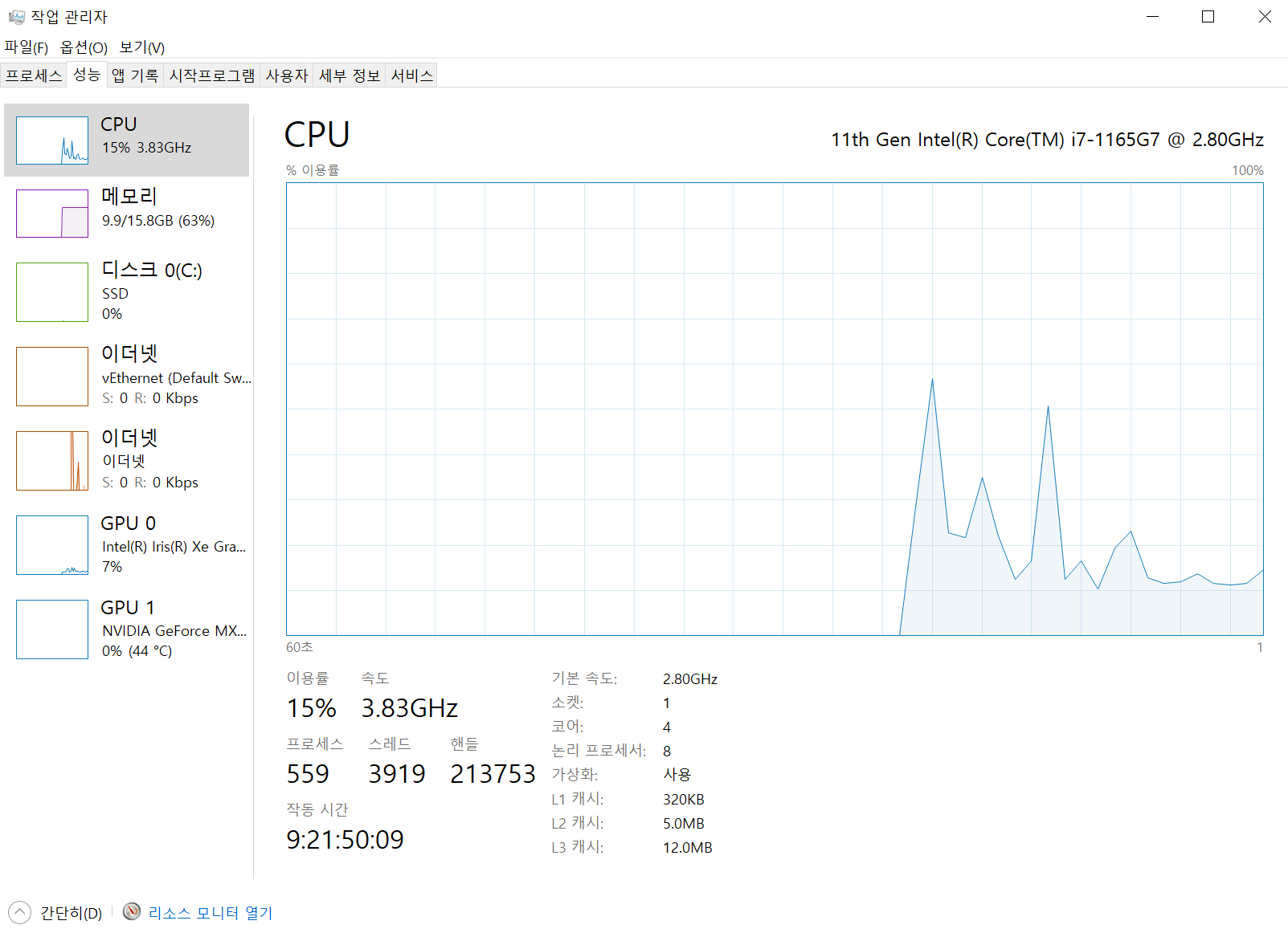 위 사진처럼 가상화가 사용처리 되었으면 완료.