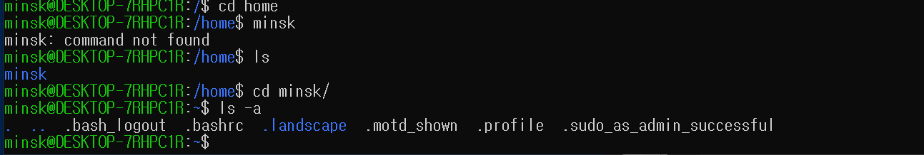ls -a # 숨김 파일(.) 포함