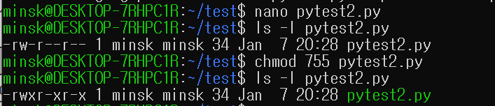 ex) chmod 755 script.sh : 소유자는 rwx, 그룹/그 외 사용자는 r-x 권한