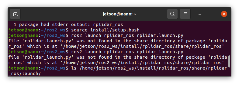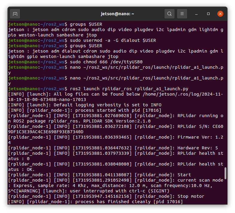 _jetson@nano:~/ros2_ws$ ros2 launch rplidar_ros rplidar_a1_launch.py