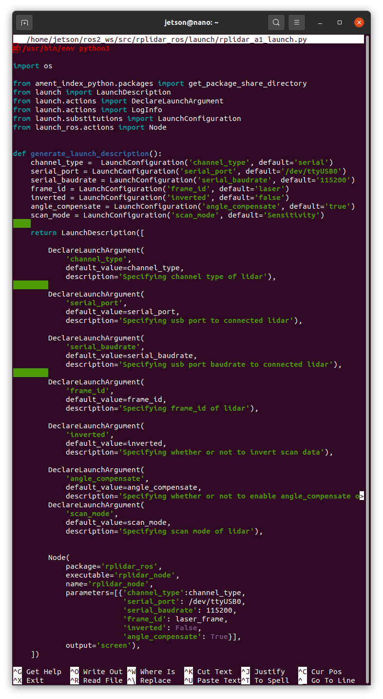 nano ~/ros2_ws/src/rplidar_ros/launch/rplidar_a1_launch.py