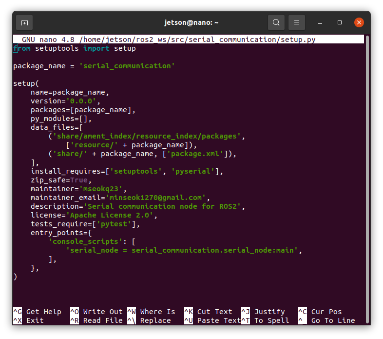 sudo nano ~/ros2_ws/src/serial_communication/setup.py