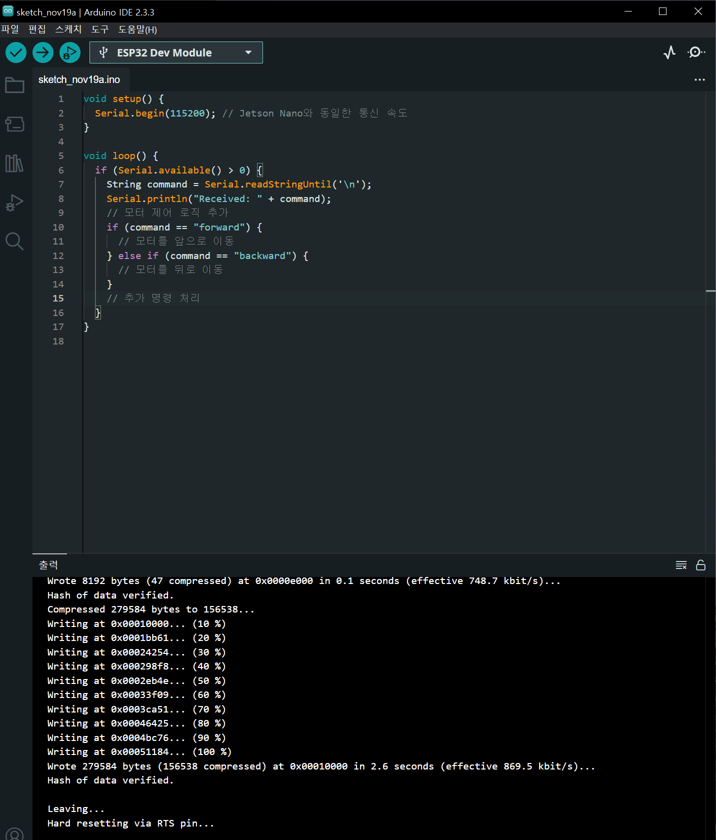 Serial.begin(115200); // same Jetson Nano board rate}
