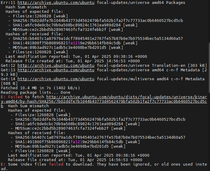 "Hash Sum mismatch" error usually indicates that APT’s local cache files are out of sync or corrupted compared to what the repository provides.