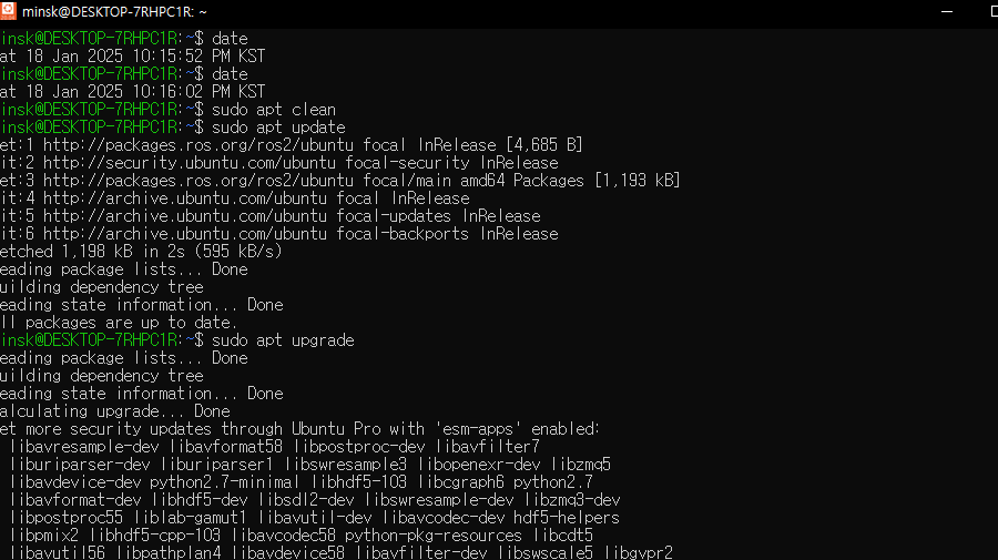 Installed packages are upgraded to their latest versions (apt upgrade).