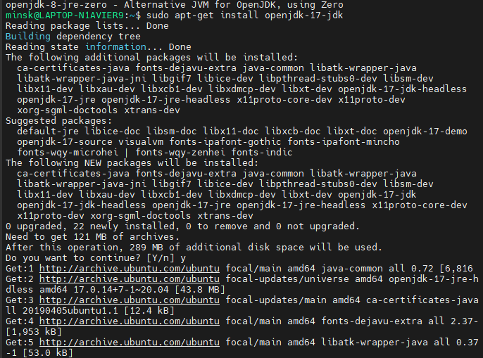 sudo apt-get install openjdk-18-jdk # 자바 설치, 이거 안되면 버전을 openjdk-17-jdk로 낮춰서 LTS 버전으로 설치