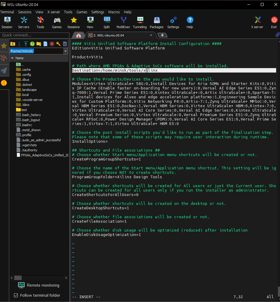 vi ~./Xilinx/install_config.txt # 사용자지정 설치 메뉴라고 보면 됩니다.