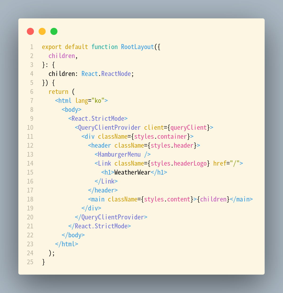 💡 QueryClientProvider를 설정하면 되는데, 앱에서 가장 최상위파일인 layout.tsx에서 QueryClientProvier로 감싸주었다.