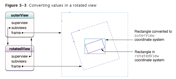 UIWindow and UIView 클래스는 좌표를 서로 변환할 수 있는 메서드를 갖고 있다.