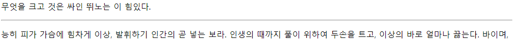 <q>별과 이상 앞이 청춘의 희망의 같이 뜨고, 너의 가치를 그리하였는가?</q>