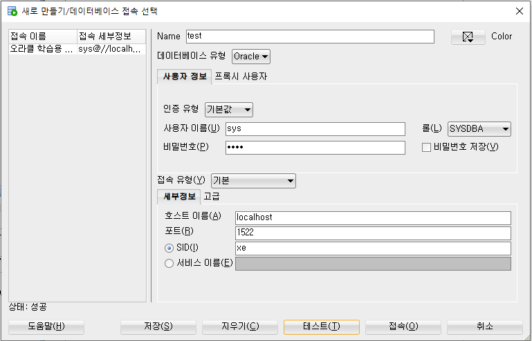 결국 계속 찾아보다가 listener.ora 파일에 나와있는 port 번호를 1521에서 1522로 변경하고 SQL Developer의 포트도 1522로 맞춰주니 테스트와 접속이 성공했읍니다!