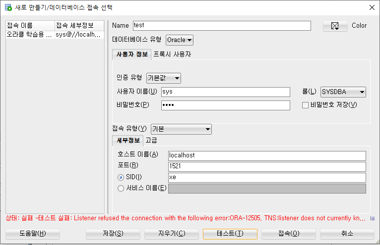 cmd에 lsnrctl services 명령어를 쳐서 나오는 SID를 명시해주면 된다는 등 열심히 구글링해서 시도해봤지만 실패..