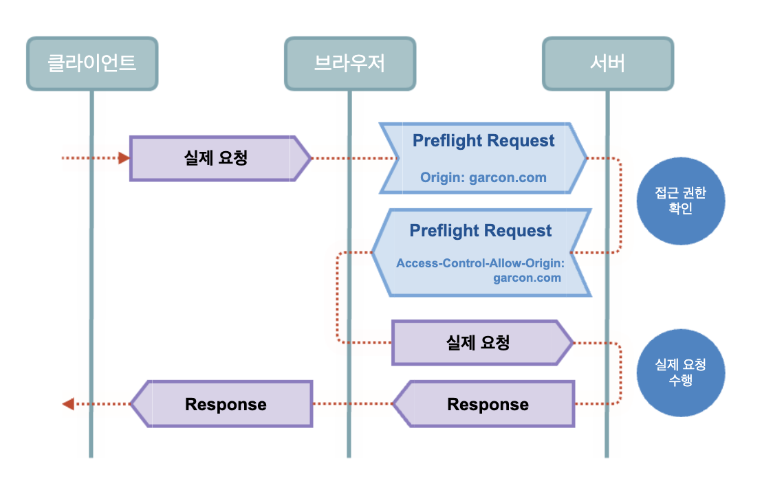 이 경우는 본 요청을 보내기전에 OPTIONS 메서드를 통해서 해당 origin이 안전한 요청을 보낸건지 한번 확인 후에 보낸다