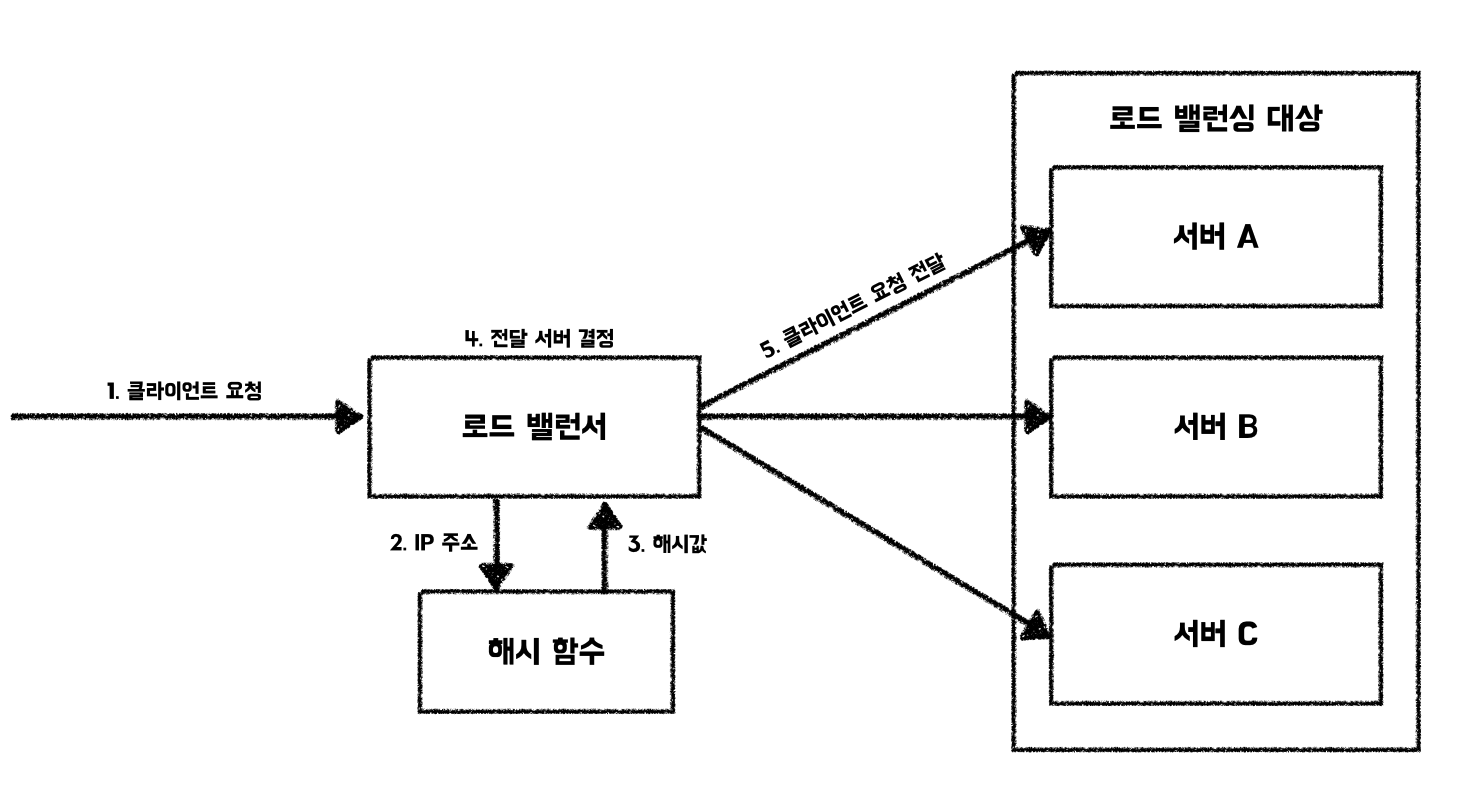 IP 주소를 기반으로 해싱을 통해서 서버에 할당하는 방식이다.