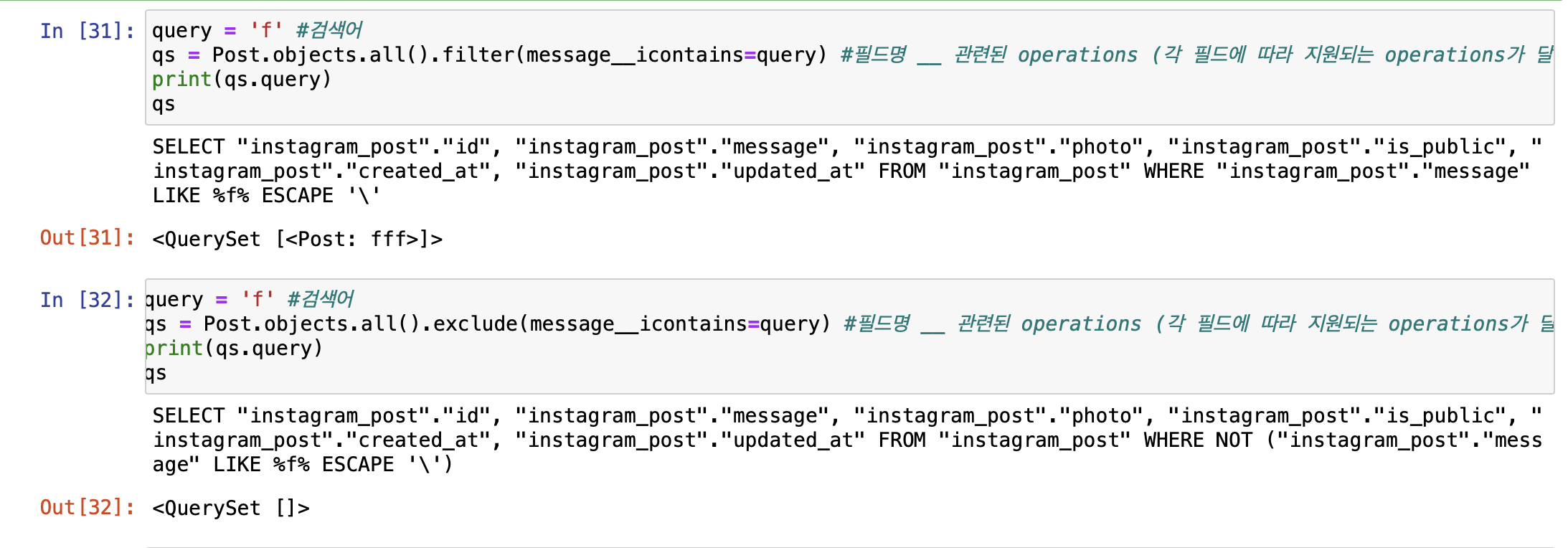 filter(), exclude() 등등