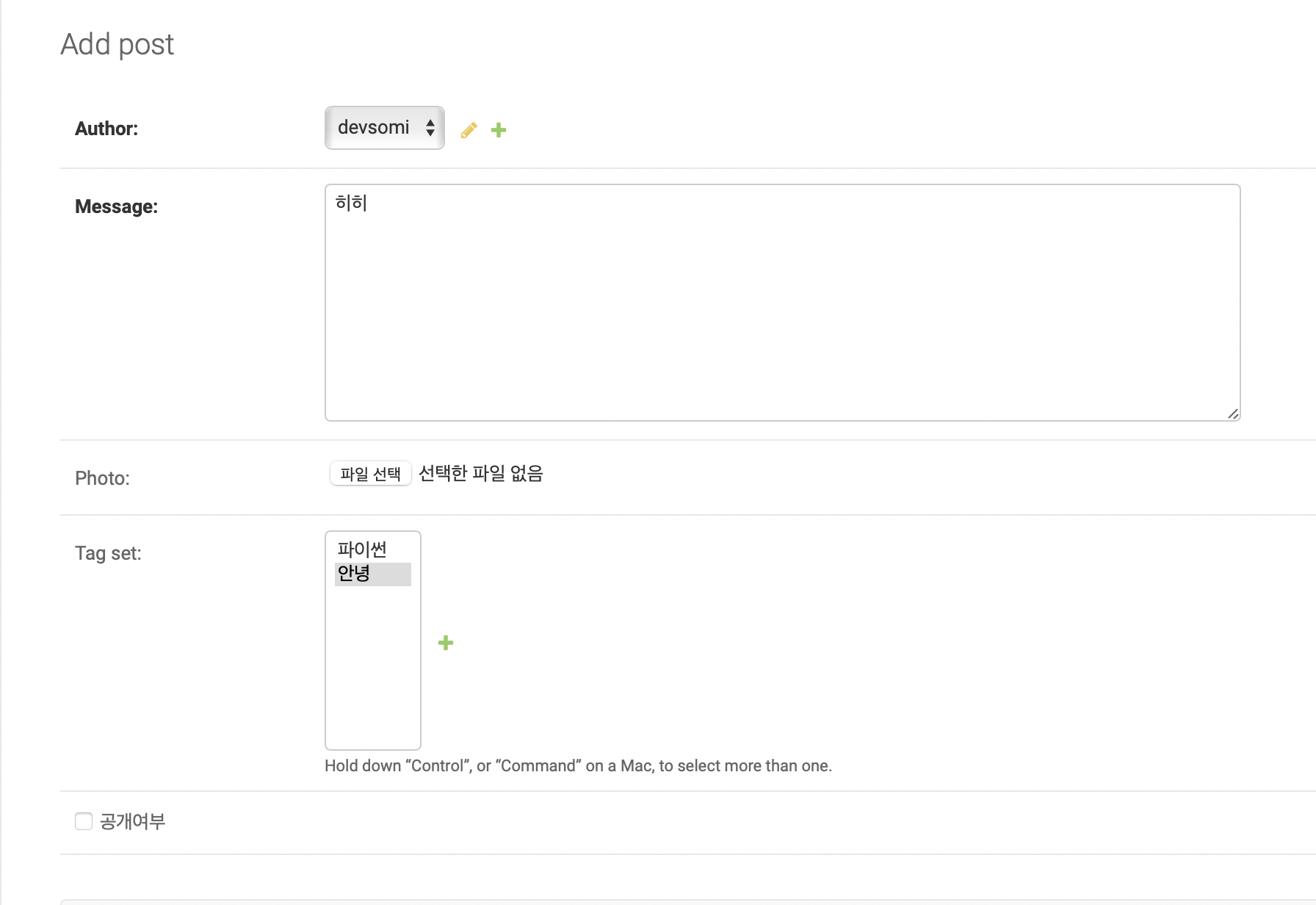 is_public = models.BooleanField(default=False, verbose_name='공개여부')