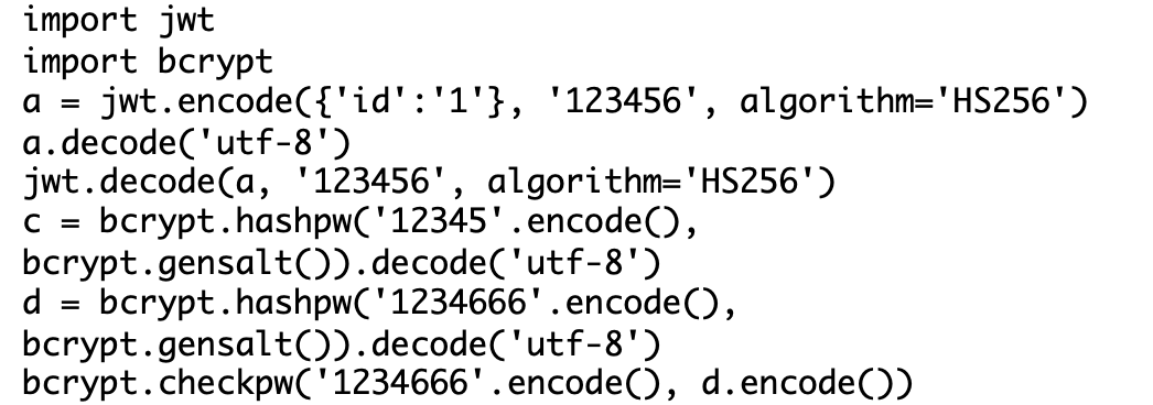 c = bcrypt.hashpw('12345'.encode(), bcrypt.gensalt()).decode('utf-8')
