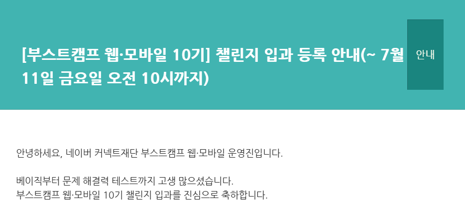 수요일 오후 즈음에 챌린지 입과 등록 안내 메일을 받을 수 있었다. 분명 아직 많이 부족한 실력임에도 불구하고 기회를 주시다니. 그렇게 나의 경험을 더 쌓을 기회가 주어졌다.