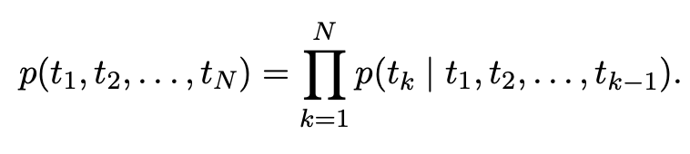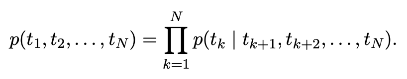 N개 토큰의 squence가 주어졌을 때 foward language model은 토큰 tk의 확률은 t1에서 tk−1까지 고려하여 계산한다.