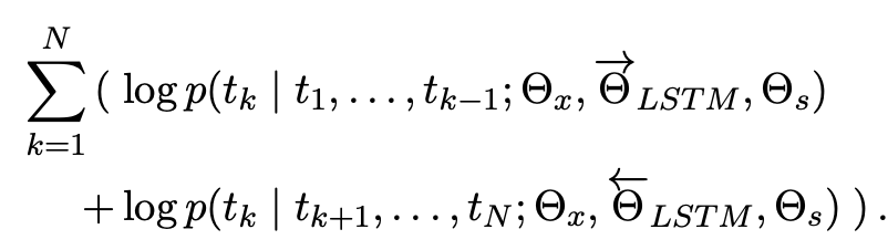 - forward language model의 likelihood와 backward language model의 likelihood를 최대화 해야한다.