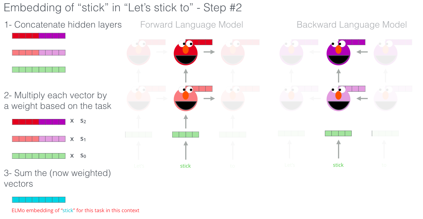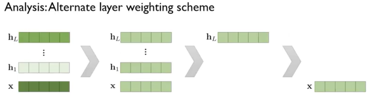 - 총 학습된 2L+1개의 representation을 가중합 하여 하나의 임베딩 벡터로 표현한다.