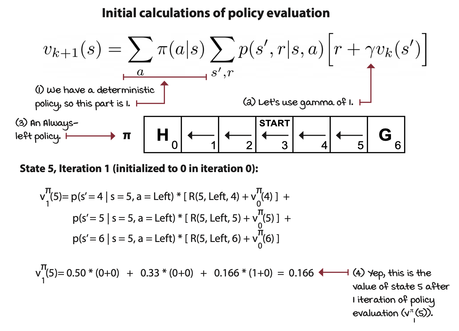 - 각 state의 value가 수렴할 때까지 반복한다.